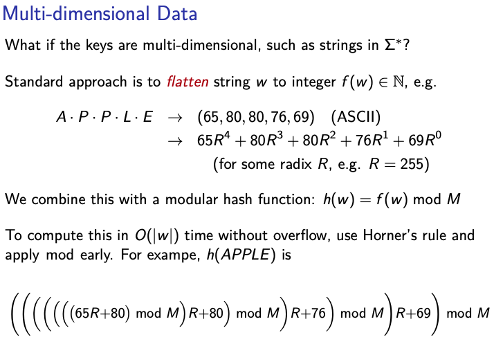 Hashing idea: Map (arbitrary) keys to integers in range and the use direct addressing.
