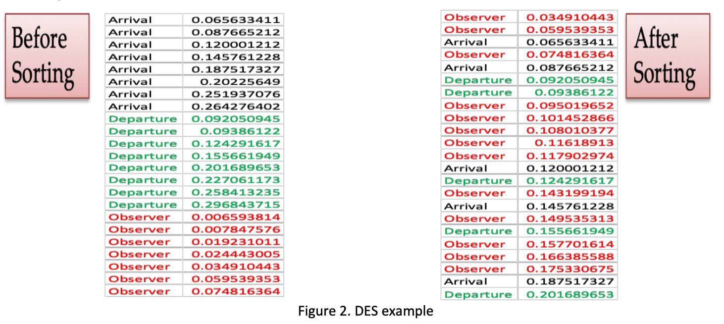 - After generating all the three events, put all the events in a list and sort them according to time as shown in the Fig. 2.