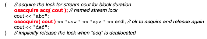 - owner lock is acquired and released indirectly by instantiating a type that is specific to the kind stream: