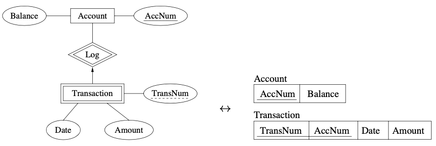 also include its own key and the primary key attributes of entity set for dominating entities, as well as its own weak attributes.