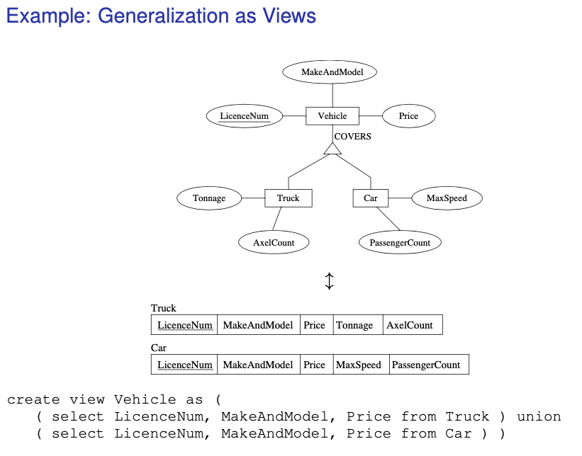 Entity sets can be mapped to view instead of a table when entity set is a specialization of 1 parent set
