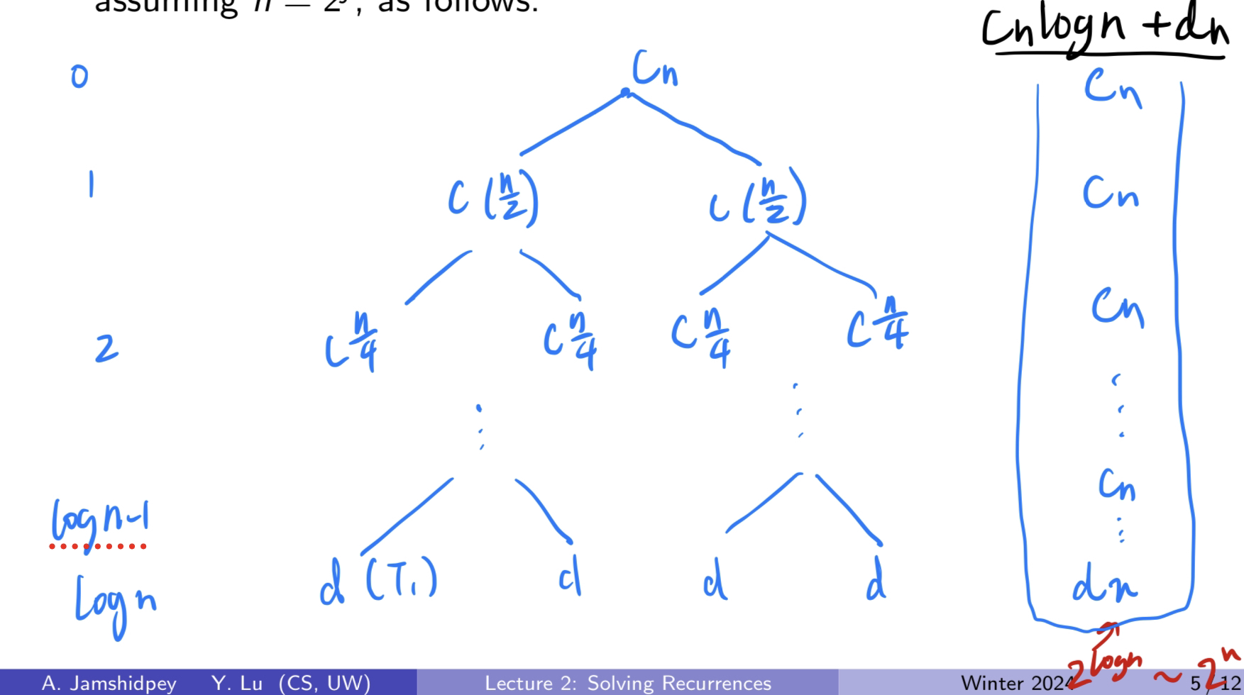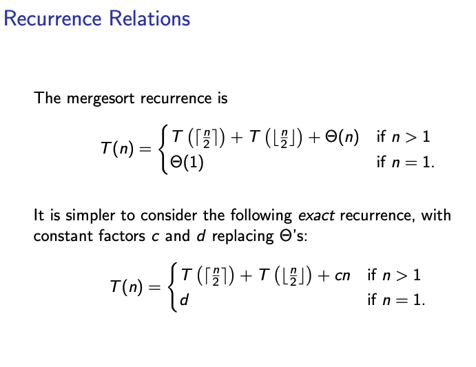 - If this solution is expressed as a function of using -notation, then we obtain the complexity of the solution of the exact recurrence for all .