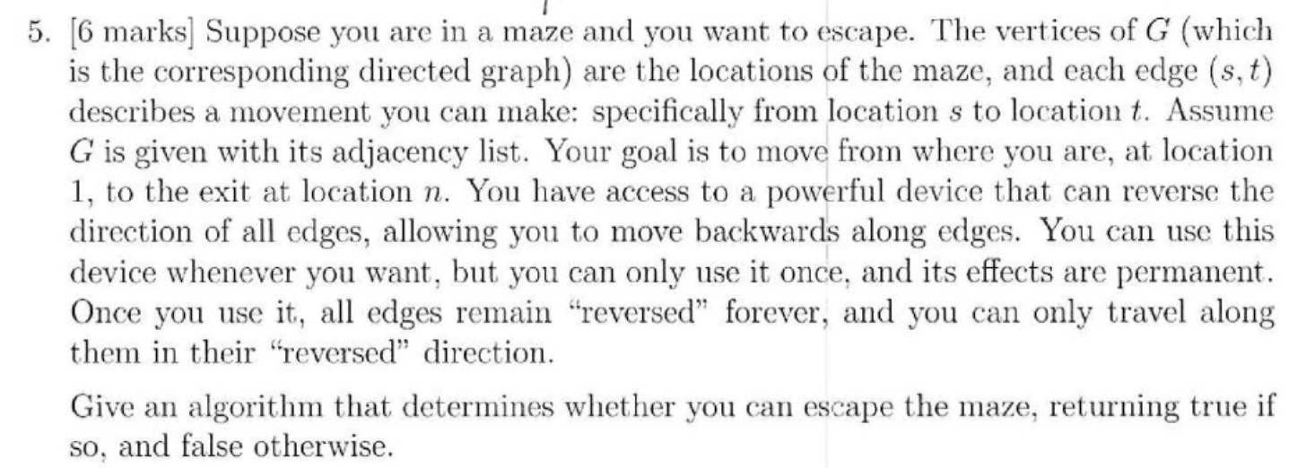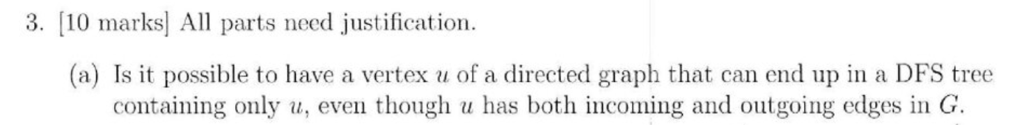 - A2Q4 wants us to use DFS to show that there is a unique path. Thus, we need to check if the edge has no forward and cross edge are discovered? yeah something like that