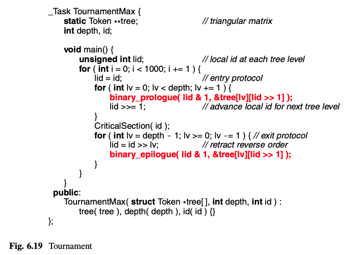 - Fig. 6.19 shows the basic code for any tournament algorithm.