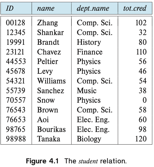 Example 1: Display a list of all students, their ID, name and dept_name and tot_cred along with the courses they have taken