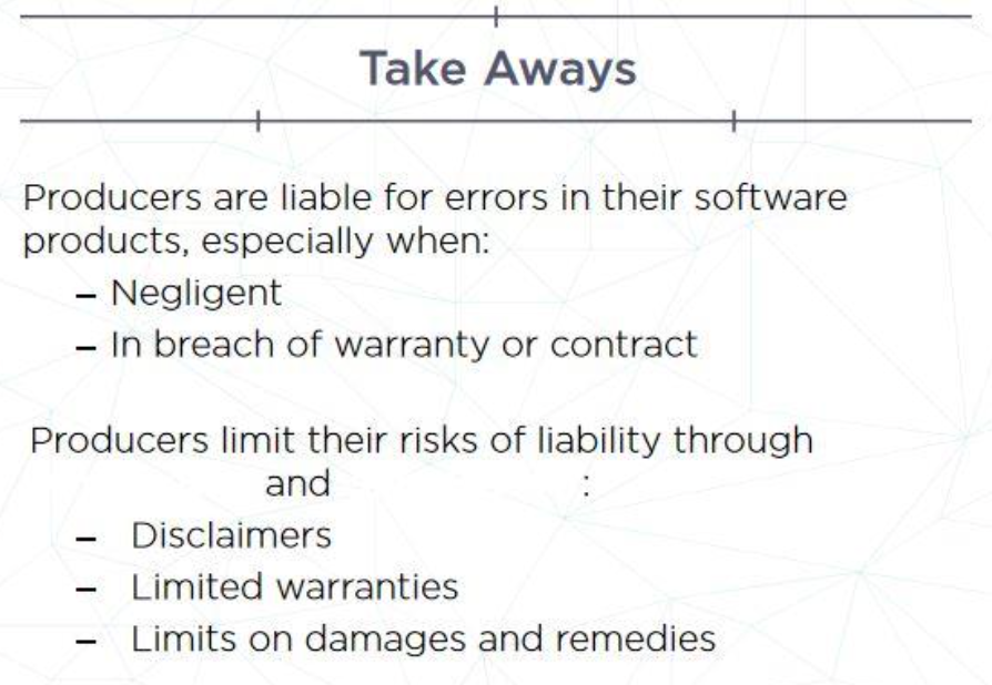 Unit 6: Software Warranties and Liabilities When software inflicts damages, to what extent are the software developers liable to compensate users?