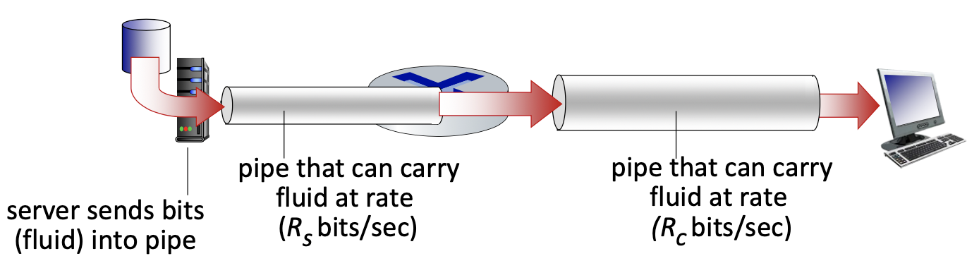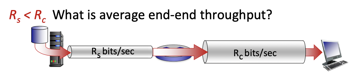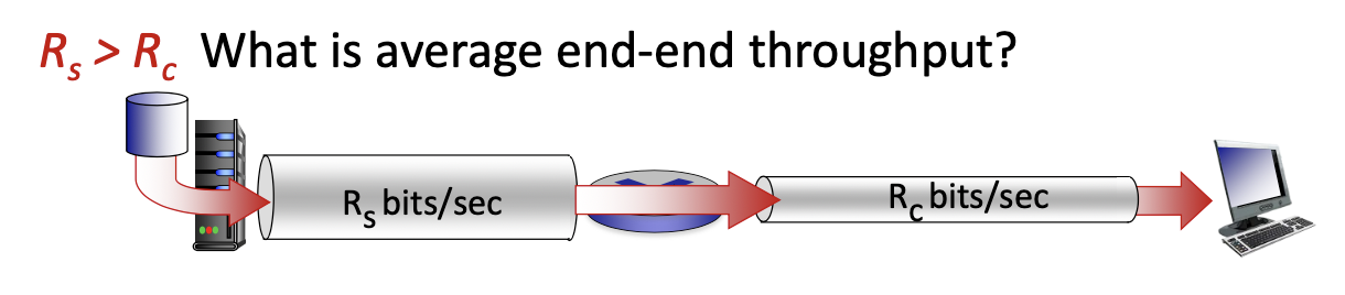 - If the server’s sending rate () is slower than the capacity of the link (), the overall throughput is limited by the server’s sending rate. The maximum throughput will be bits per second.