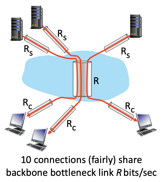 - Here is the capacity of the client’s link, is the server’s sending rate, and is the share of the backbone’s capacity that each of the 10 connections receives.