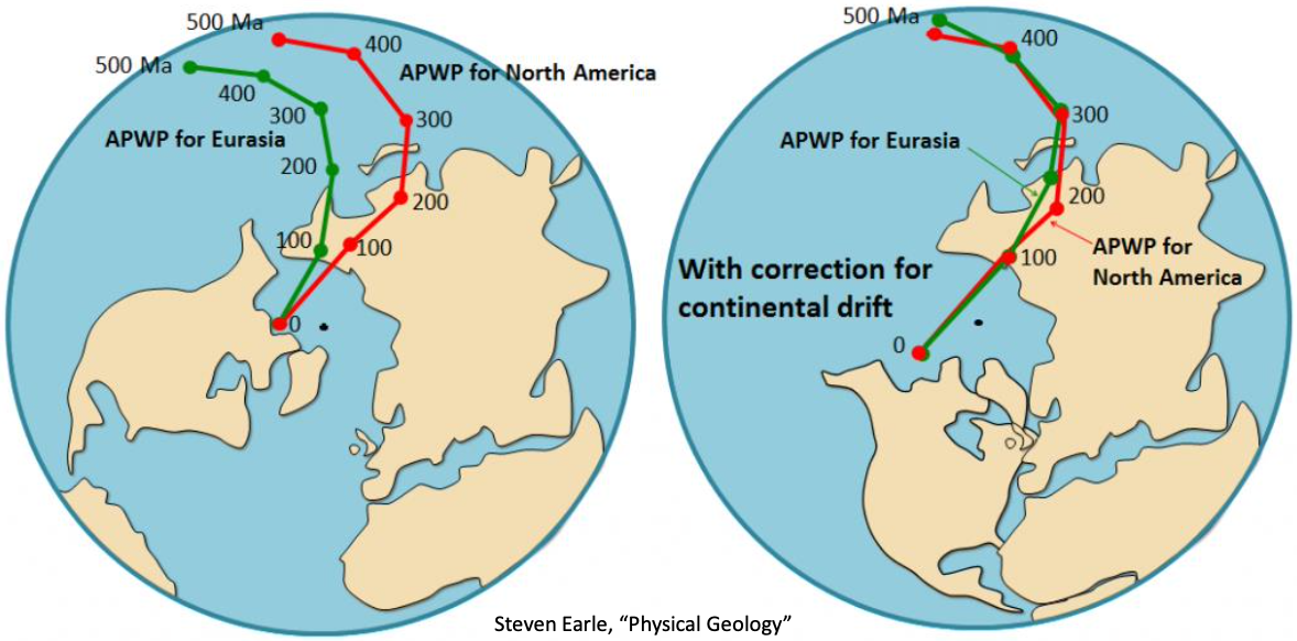 - Polar-wander curves - Rocks of different ages on a continent can point to various magnetic pole positions and make it look like the magnetic pole has wandered over the years