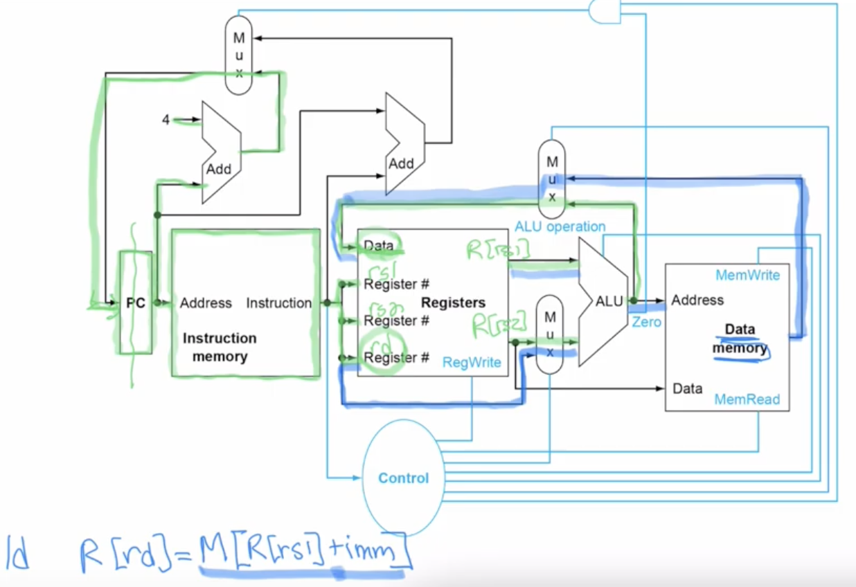 ld: R[rd]=M[R[rs1]+imm]