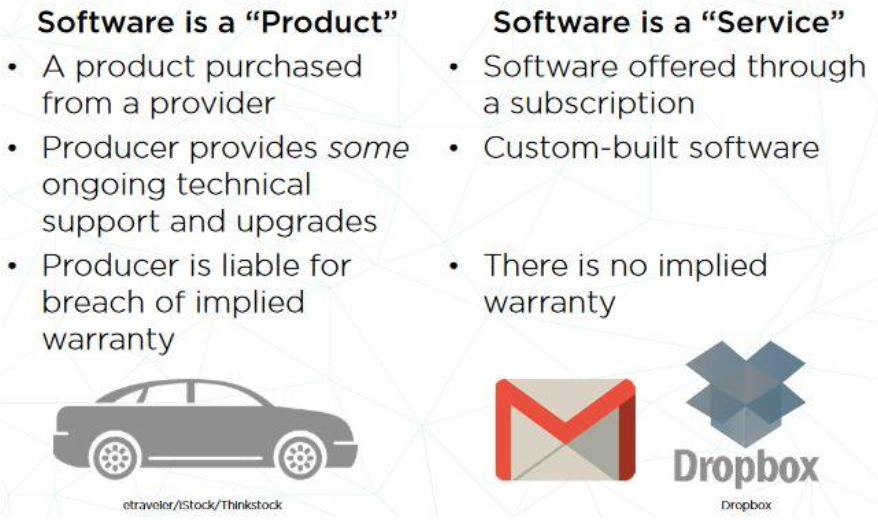 Not clear when a piece of software is a product or a service, or both and the product liability law depends on that since they are treated differently.