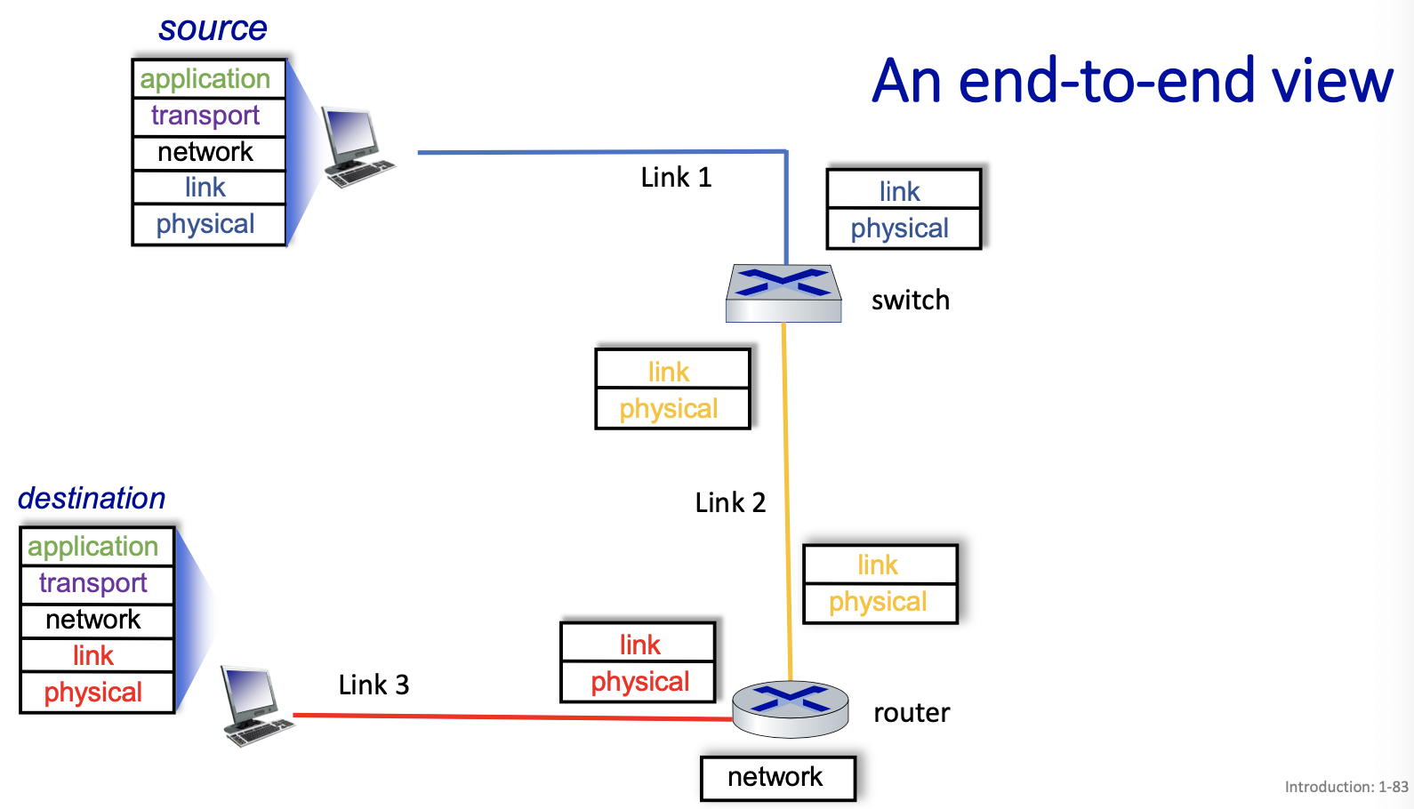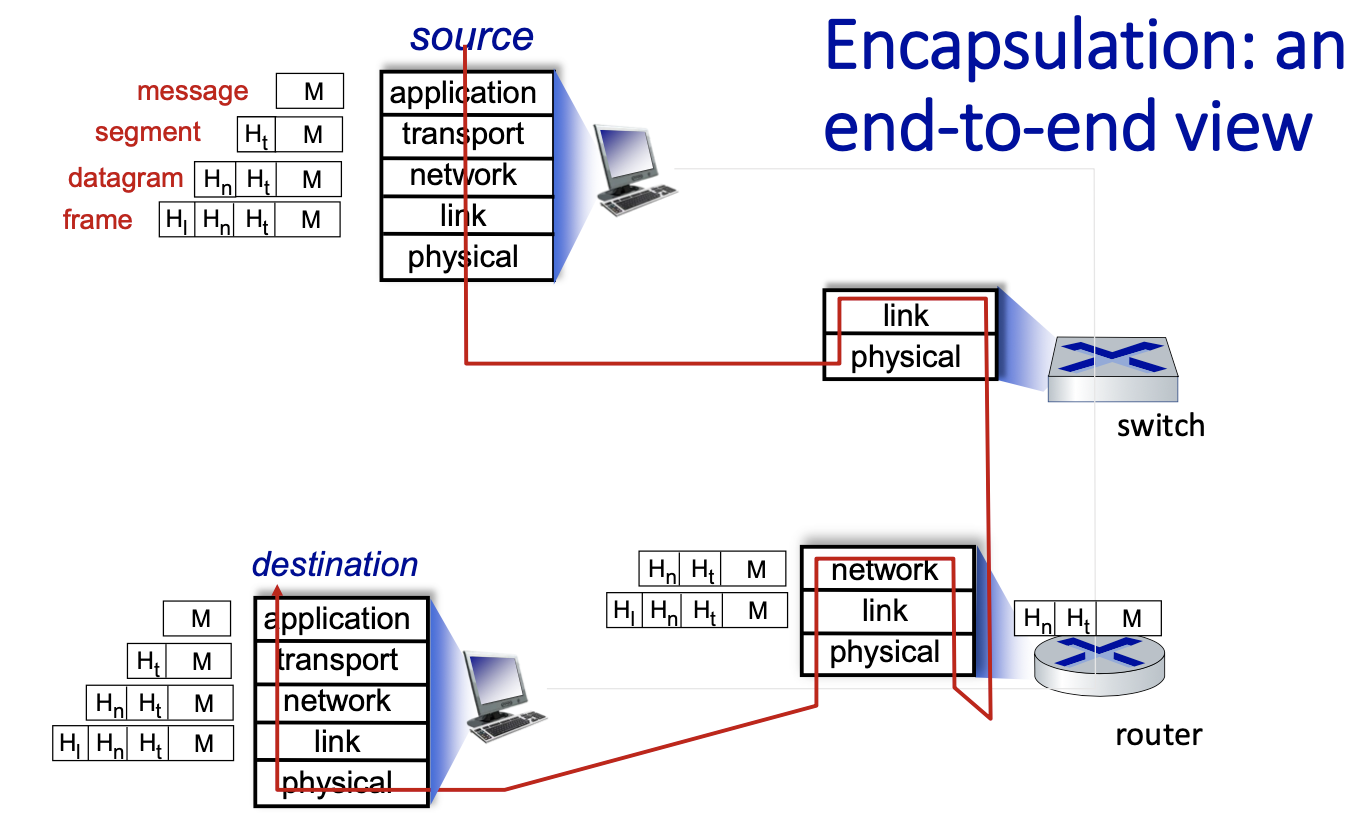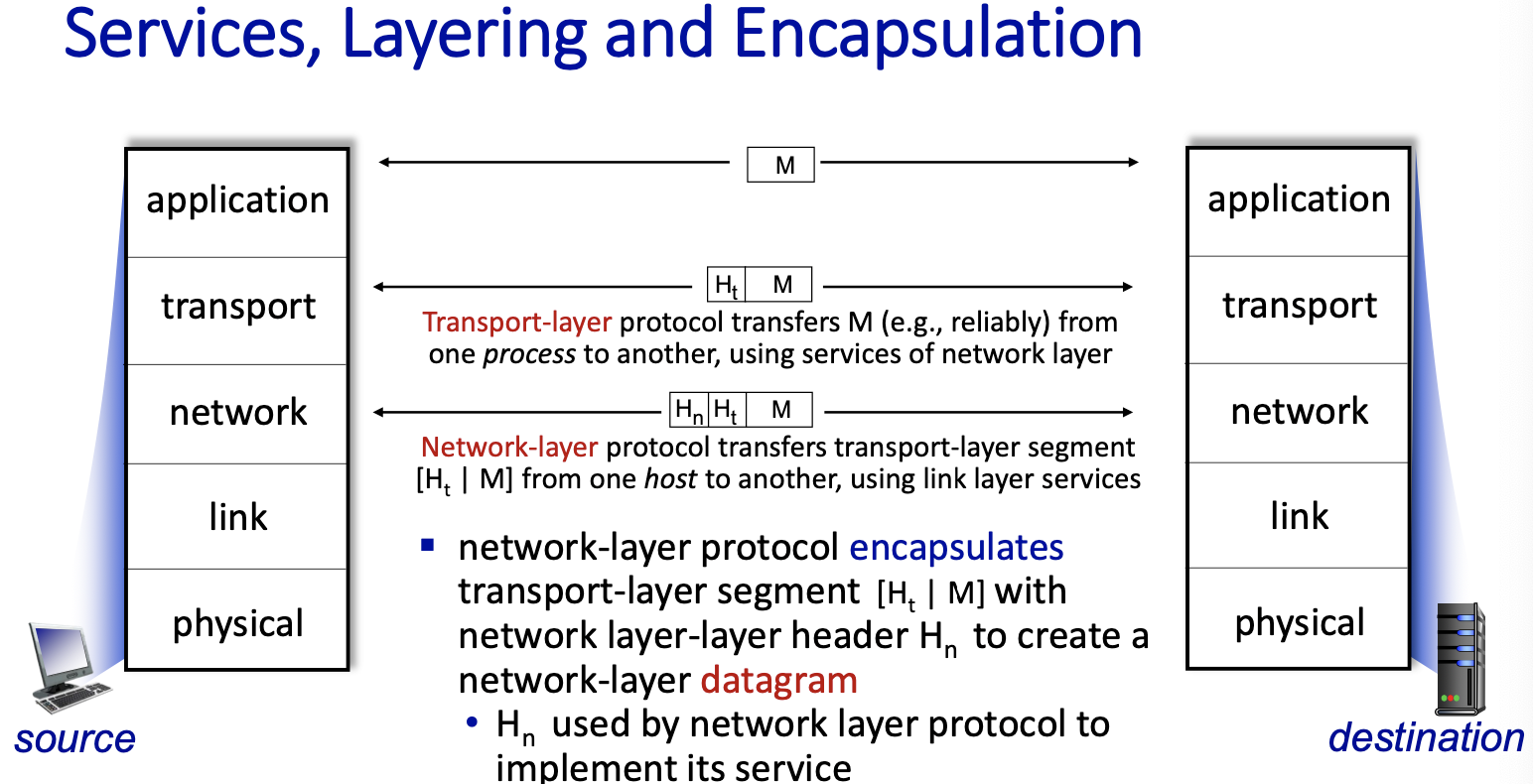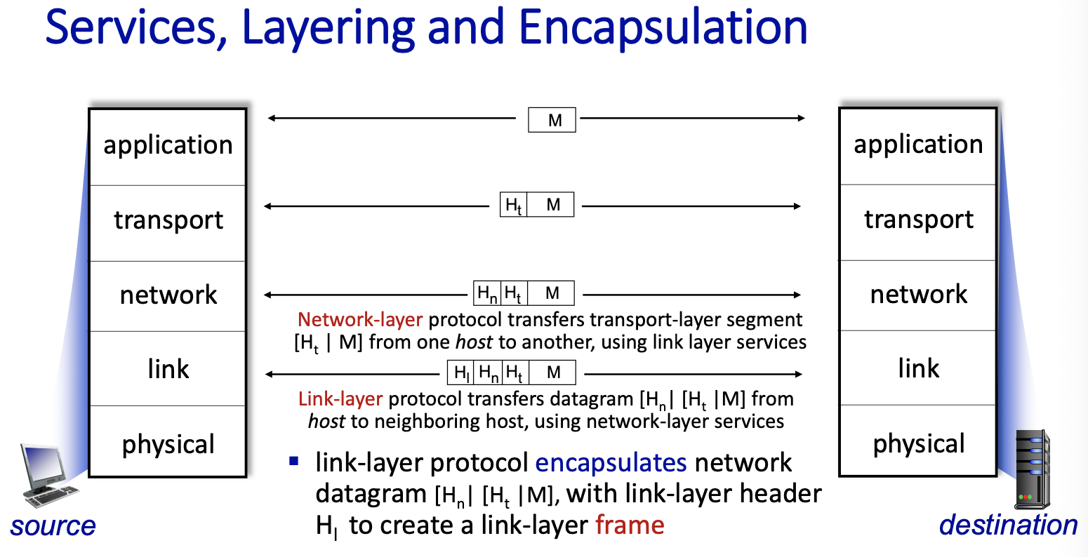 - Link Layer: data transfer between neighbouring network elements
