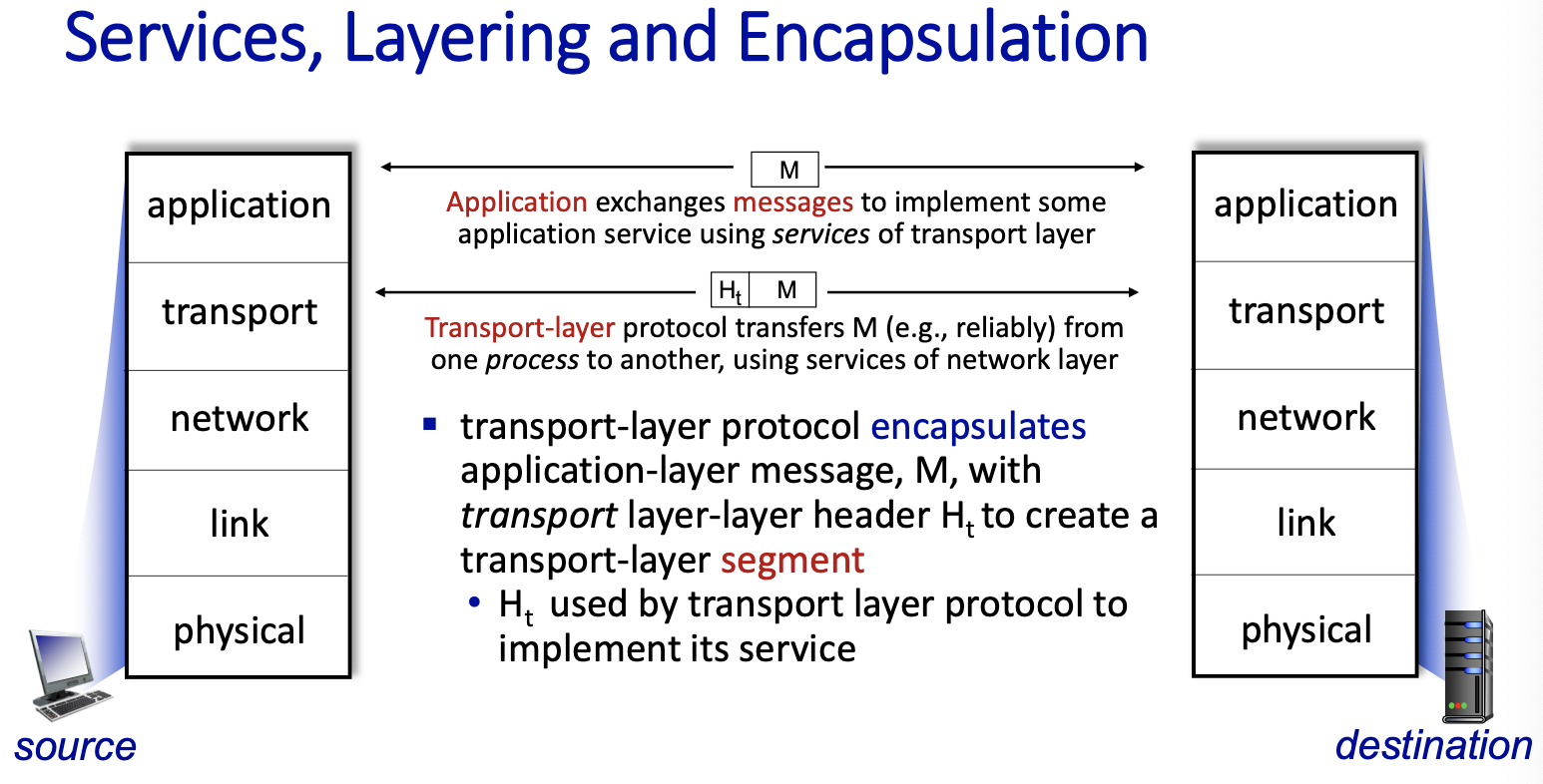- Transport Layer: process-process data transfer