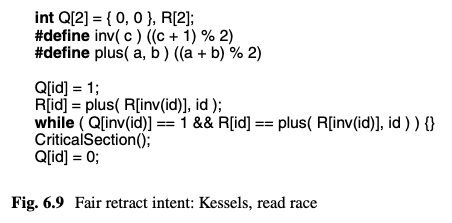 R[0]andR[1]have different values, one thread has priority, and the other must wait A mechanism for toggling between the states of T(0) and T(1) to prevent simultaneously entry into the critical section.