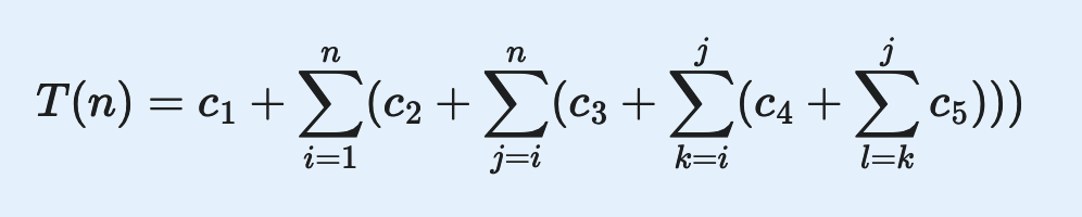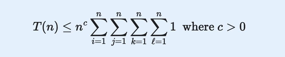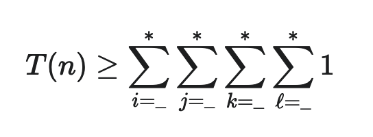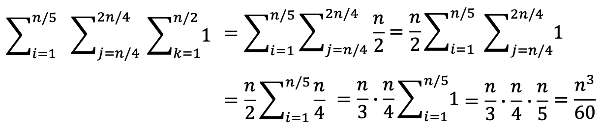 x := x + 1- The lower bound of this algorithm is , Outer loop is to and inner loop is to , is the current value of outer loop for each , inner loop does iterations. Since the inner loop is nested within the outer loop, we need to find the max number of iterations for the inner loop across all iterations of the outer loop. So the max value of is . Then, inner loop iterates from to which simplifies to and further simplified to .