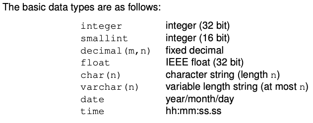 SQL Data Types Basic SQL fixes the universe of a relational database instance to be the union of the values given a predefined collection of data types. Related Structured Query Language Relational Database