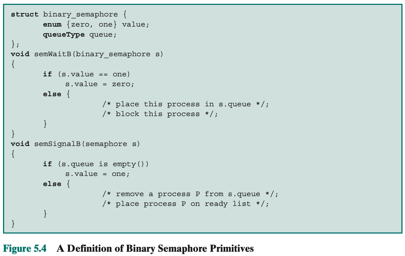 A binary semaphore may only take on the values 0 and 1 and can be defined by the following three operations: