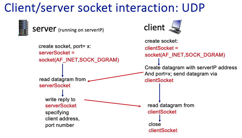 - UDP provides unreliable transfer of groups of bytes (“datagrams”) between client and server processes