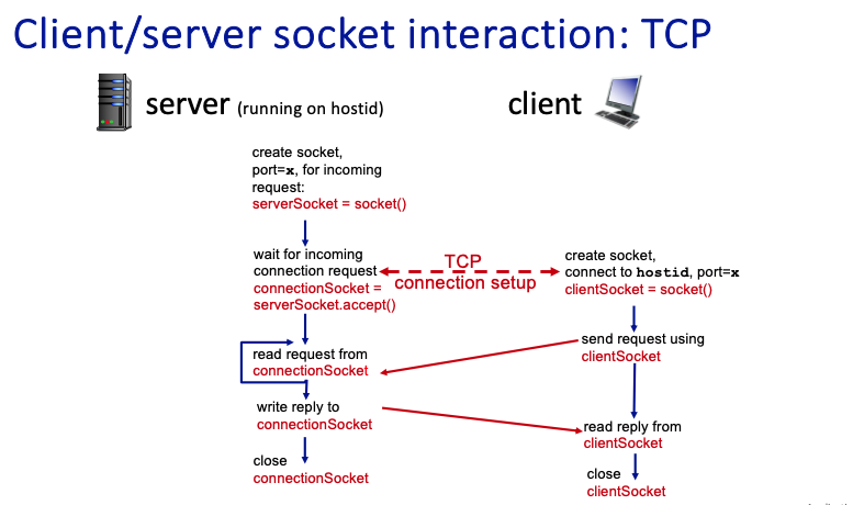 - when contacted by client, server TCP creates new socket for server process to communicate with that particular client