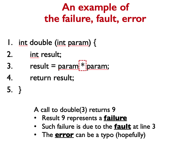 - Observable incorrect behaviour of a program. Related to the behaviour of the program rather than its code.