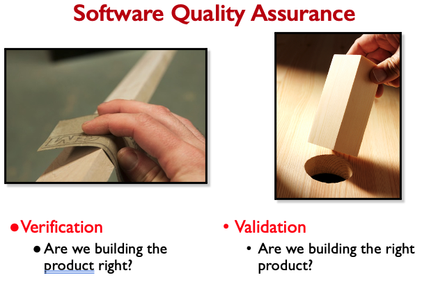 - Verification is the process of checking that the software meets its stated functional and non-functional requirements