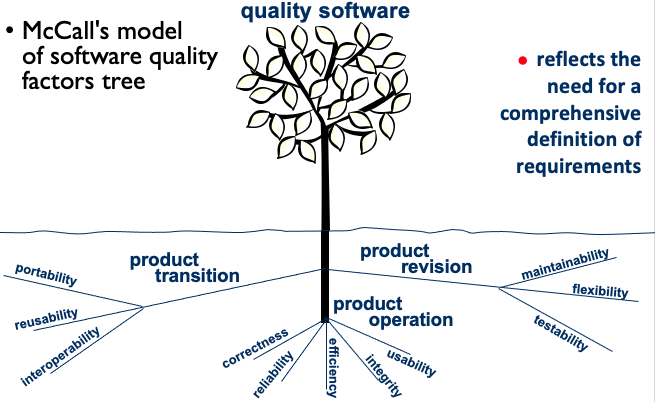 - Product operation → the extent to which the software fulfils its specifications (i.e., requirements)