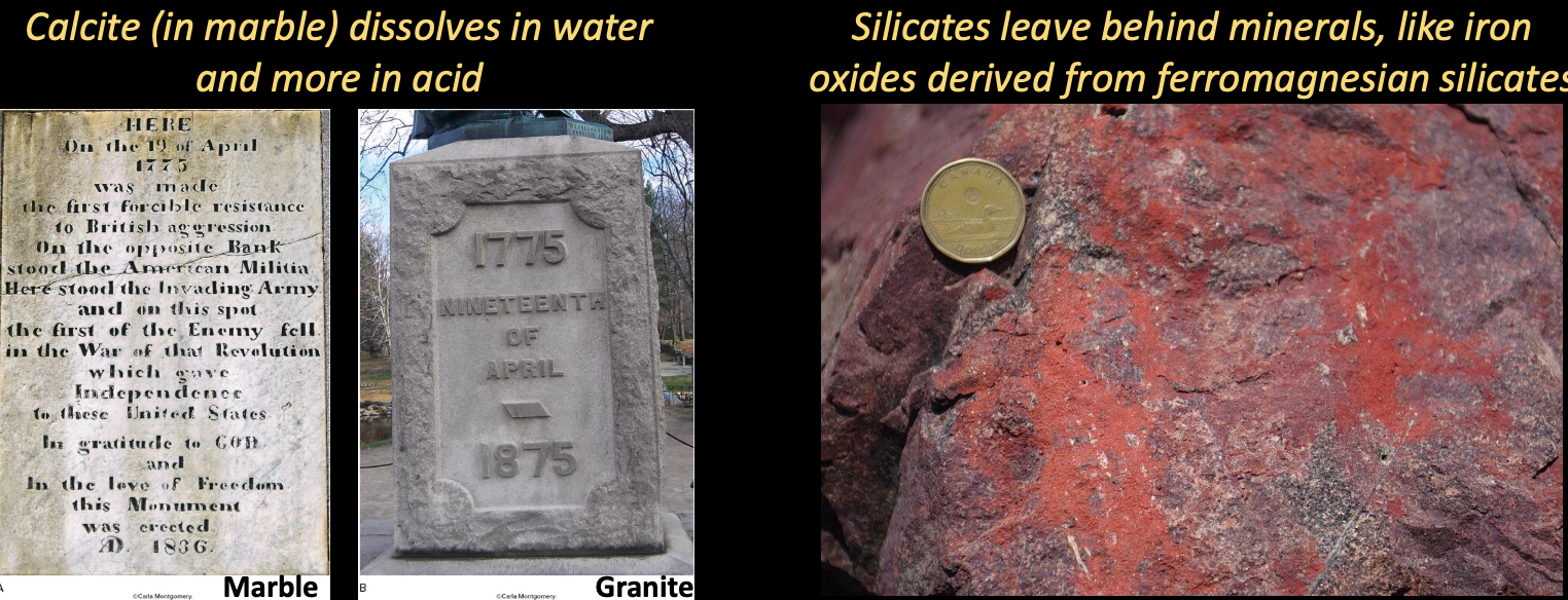 Weathering: essentially occurs in place; represents the preparation for erosion to take place.