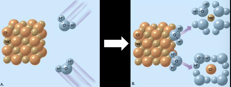 Dissolution: Ions leached by water; e.g., halite (salt) or calcite