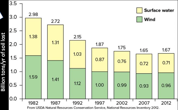 - Runoff erosion estimated via stream loads; Wind erosion harder to estimate