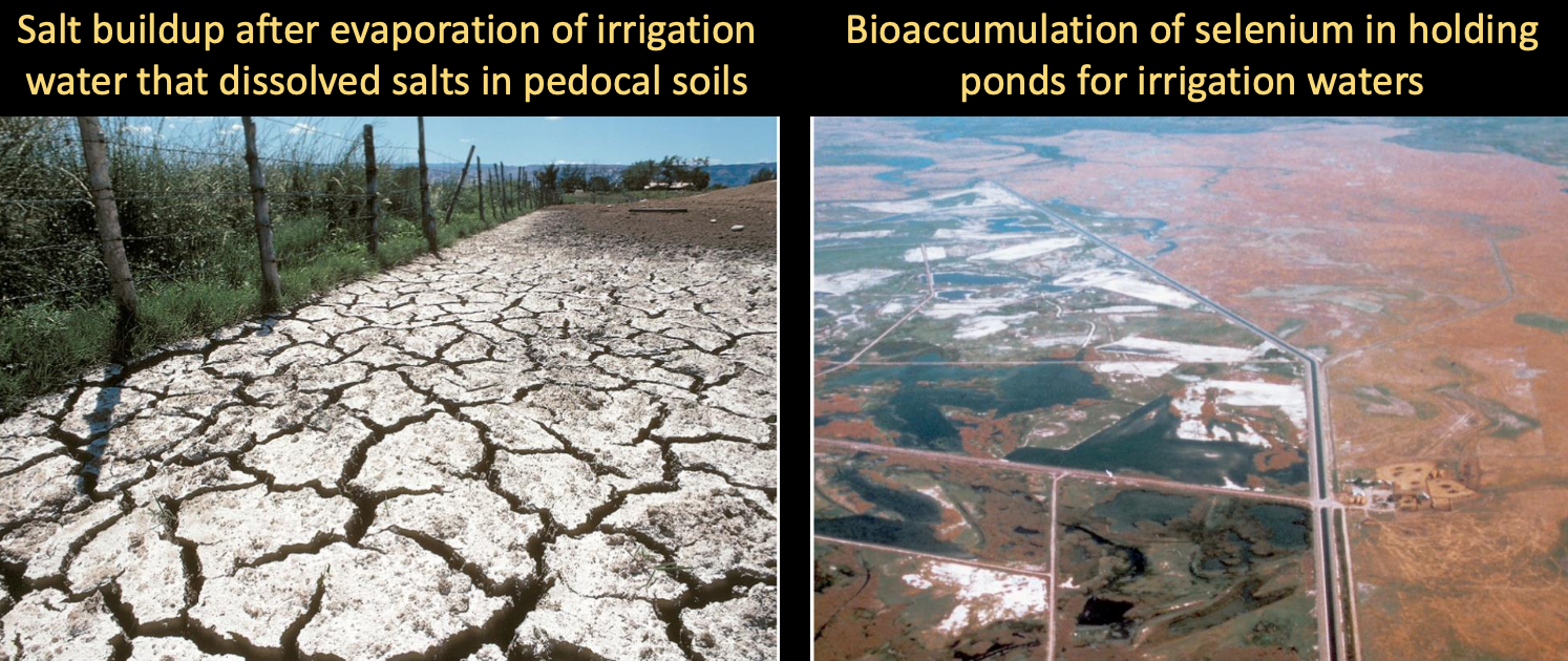 Irrigation runoff can redistribute soluble chemicals that become soluble