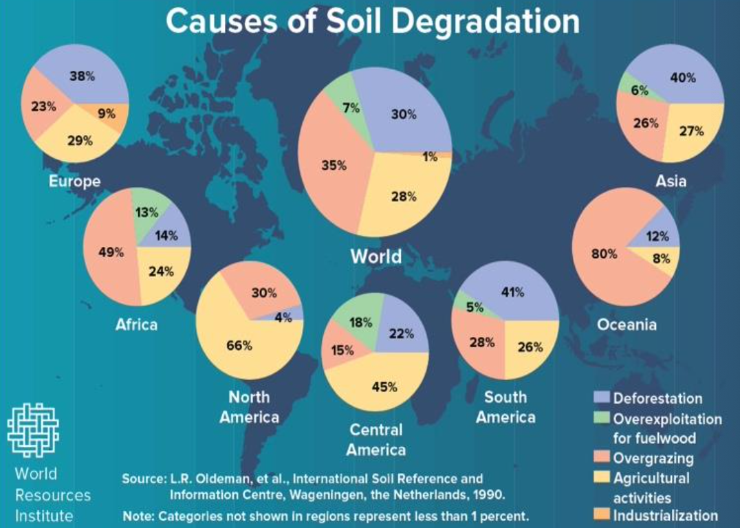 ‘Soil compaction, low organic matter, loss of soil structure, poor internal drainage, salinization, and soil acidity problems are other serious soil degradation conditions that can accelerate the soil erosion process.’