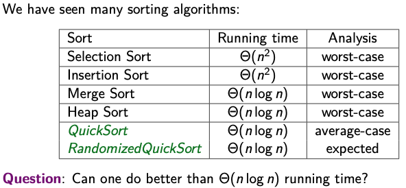 - Runtime for best case is and for average and worst case: