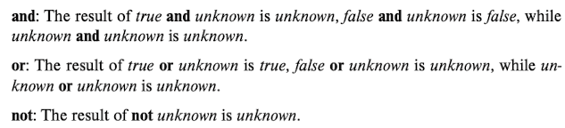 If where clause condition evaluates to either false or unknown for a tuple, that tuplis is not added to the result.