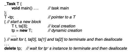- Once a task is declared it has no special relationship with its declarer other than what results from the normal scope rules.