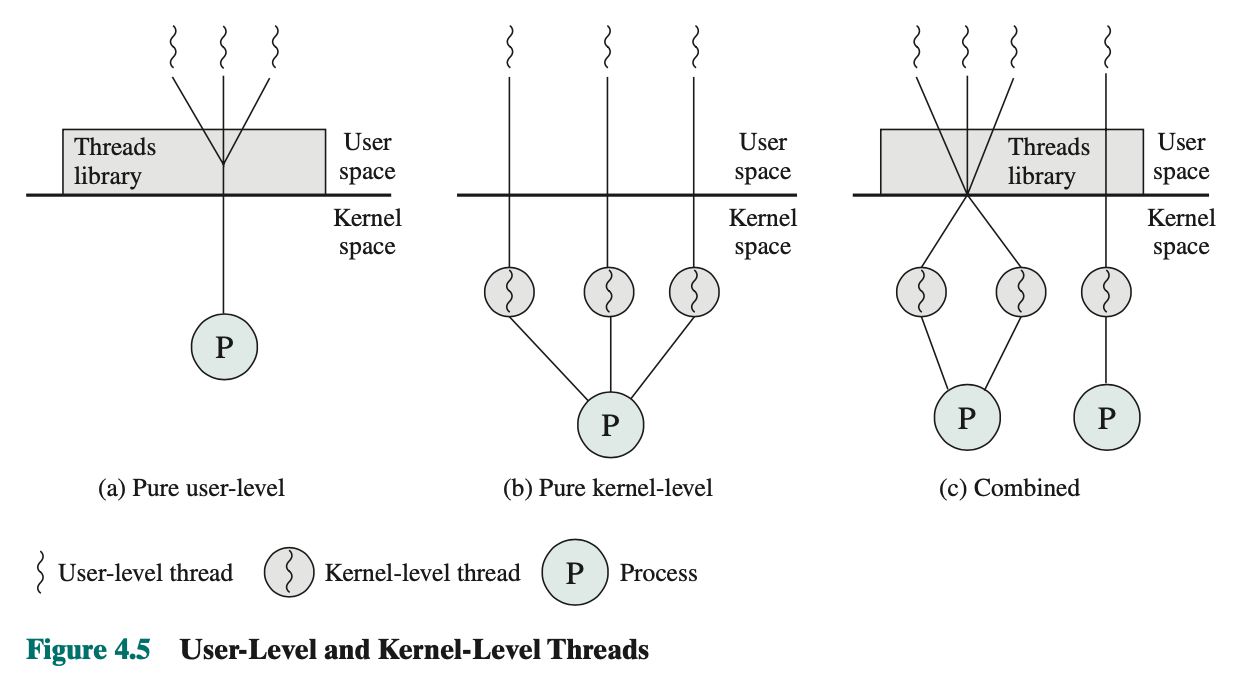 All of the work of thread management is done by the application and the kernel is not aware of the existence of threads.