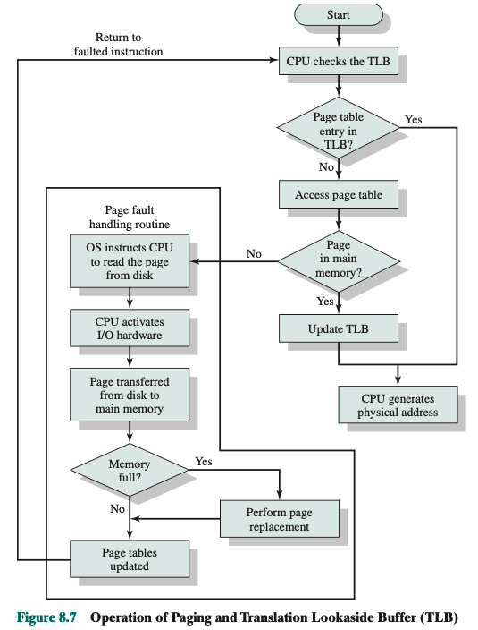 - To keep the flowchart simple, the fact that the OS may dispatch another process while disk I/O is underway is not shown. By the principle of locality, most virtual memory references will be to locations in recently used pages.