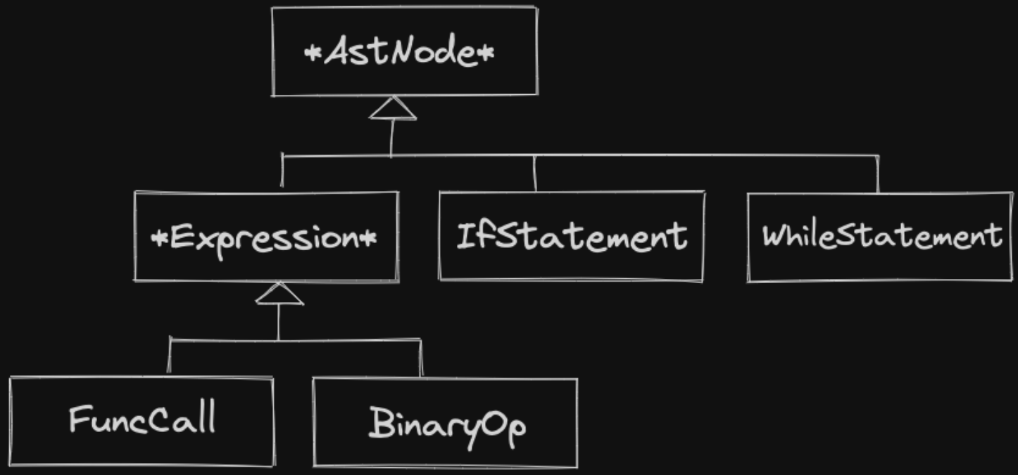 Whereas, if you didn’t use visitor, then to get more functionality out of your class with the accept method (the AST hierarchy in the course notes) you could only do this by adding a pure virtual method to all classes in the AST hierarchy.