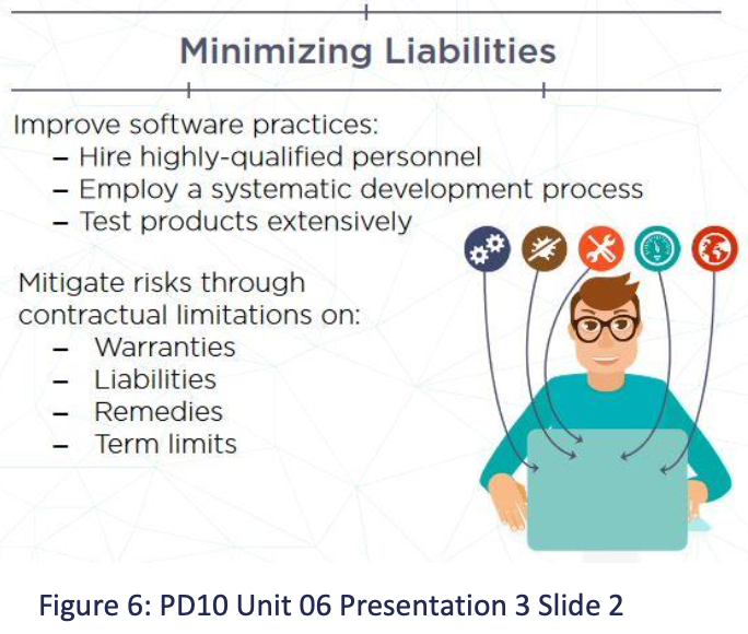 Most commercial software will provide a limited warranty that makes some promises but tries to reduce the producer’s overall risk of liability by asserting limits on the extent of the warranty.