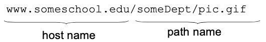 - web page consists of base HTML-file which includes several referenced objects, each addressable by a URL, e.g.,