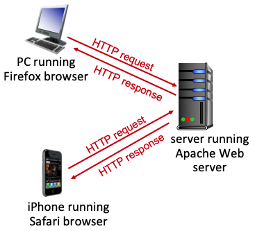 - client: browser that requests, receives, (using HTTP protocol) and “displays” Web objects