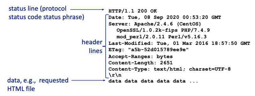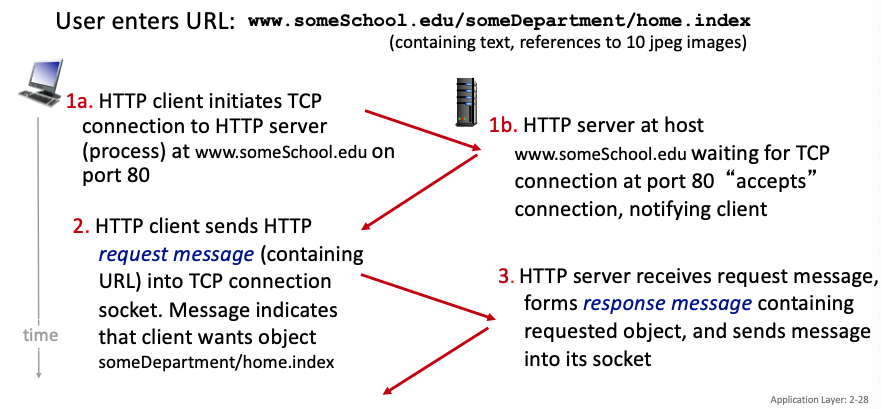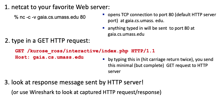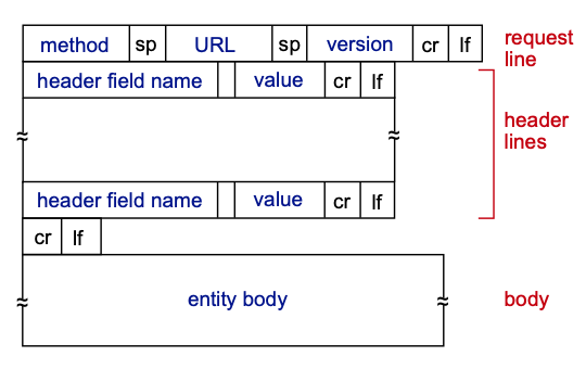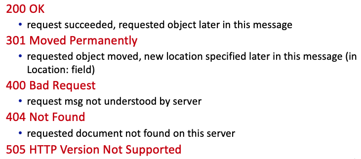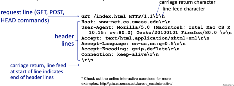 - HTTP messages (application-layer protocol messages) exchanged between browser (HTTP client) and Web server (HTTP server)