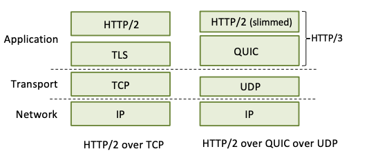- Foundation: QUIC is built on top of UDP to avoid some of the inherent issues with TCP (Transmission Control Protocol), such as latency caused by head-of-line (HOL) blocking and the need for multiple handshakes.