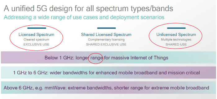 - Unlicensed: used by WiFi (and recently also by cellular networks)