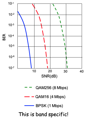 - SNR (Signal-to-Noise) vs. BER (Bit Error Rate) tradeoffs