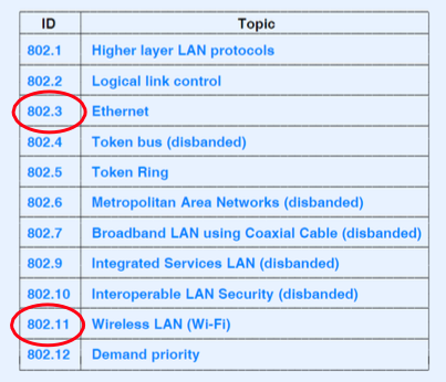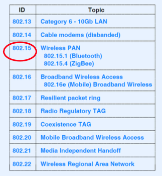 - 802.15.1: evolved from Bluetooth specification