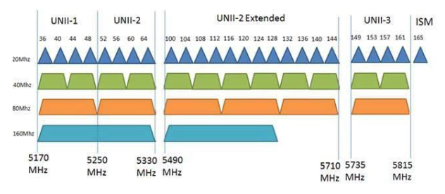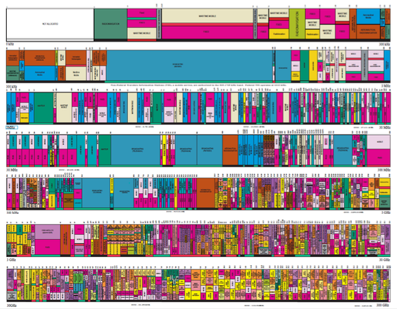 - Four separate bands (a new one has been added by the FCC at 60 GHz, with complex sharing schemes to avoid incumbents)