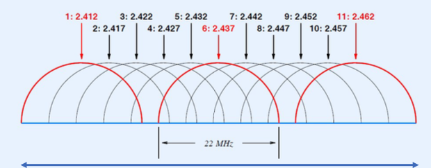 - I 4 channels (22 MHz) defined for North America in 2.4 GHz range