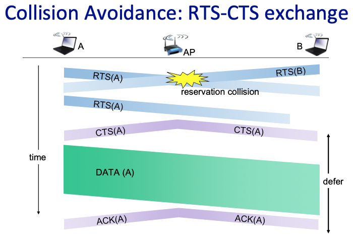 - Effect: All nodes that hear the CTS will defer their transmissions for the duration specified, thus avoiding collision at the receiver.