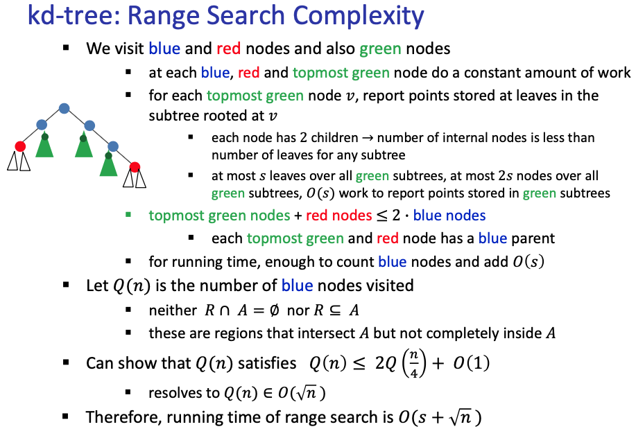 - This solves to the complexity of range search in kd-trees is (that is if it’s 2-d)